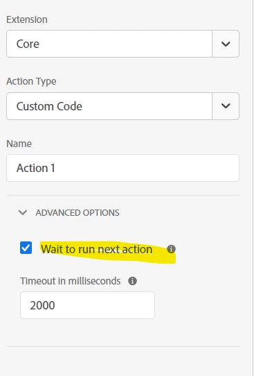 Each action has Advanced Options to allow you to choose whether to wait to run the next action in the sequence...