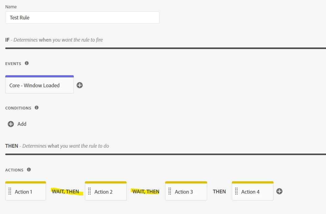 Now, if you have a dependency, wherein something in Rule 1 must finish before Rule 2, the best way to do this is to add Both of the actions into a single rule...