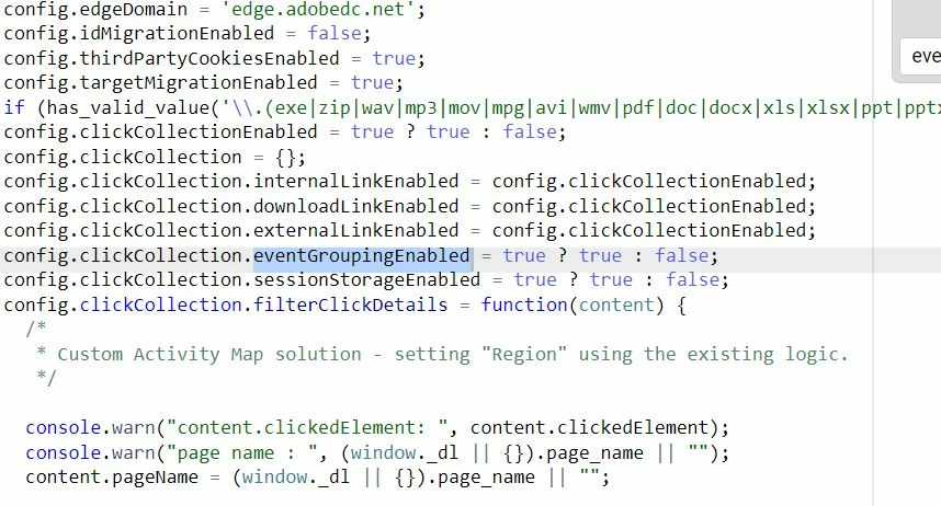 hi all, based on the adobe documentation clickCollection.eventGroupingEnabled is a boolean that determines if the library waits until the next page to send link tracking data (clickCollection | Adobe Data Collection). Have tried setting it to "true" and the event bundling does not work. The existing appMeasurement set up does the trick - activity map is being surfaced on the next pageload. Want to have the exact set up in the web sdk. Would appreciate if anyone could help. Thanks