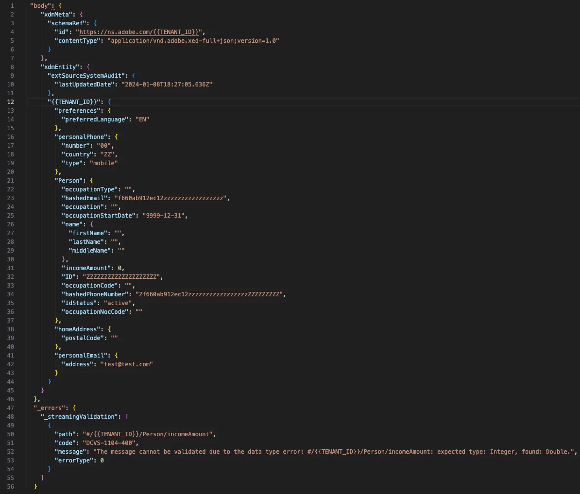 Is that JSON payload xdm compliant or you mapped a custom one?