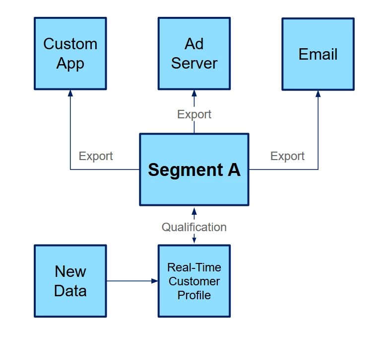 - Segment qualification: This is a segment job that scans the users streaming into Real-Time Customer Profile and adds qualified users to the segment, or removes those that no longer qualify.