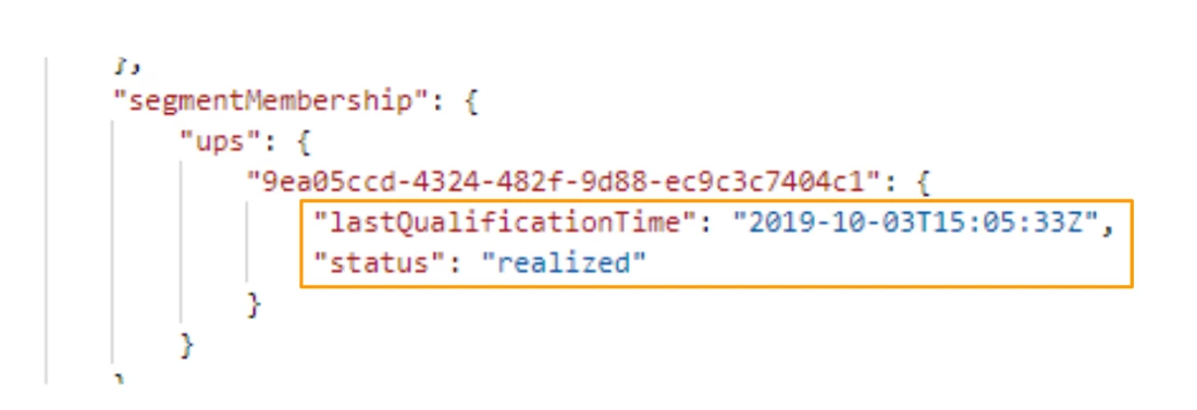 The snapshot above also shows how segmentMembership captures the parameters we need to find the profiles that fall into a segment.