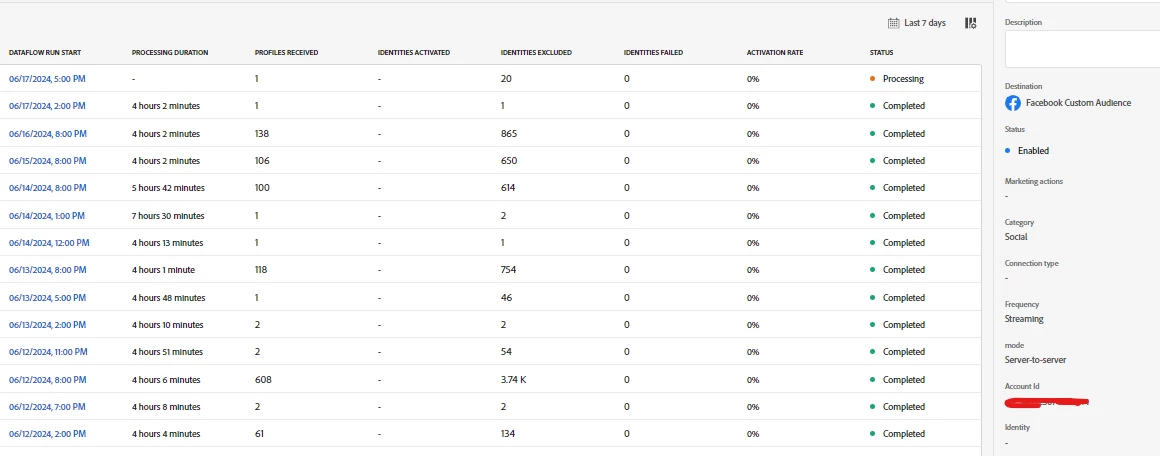 facebook custom audience destinations - how often dataflow works ? | Community