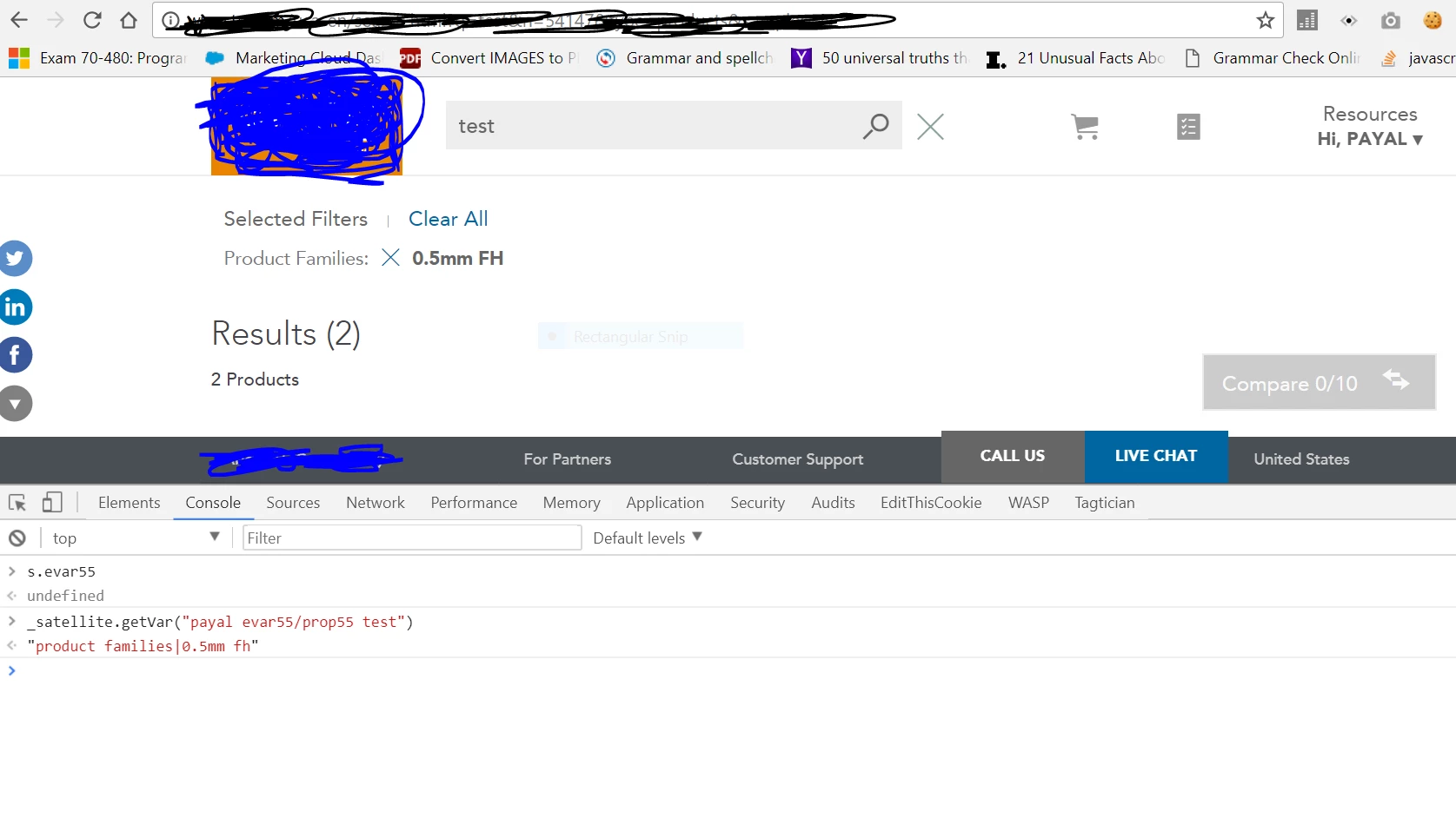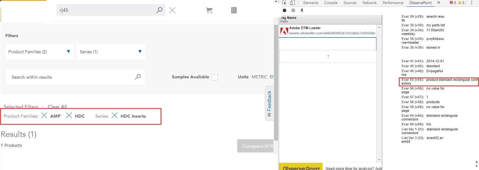 Evar55 should capture the value of filter selected by users on search result page and PLP.