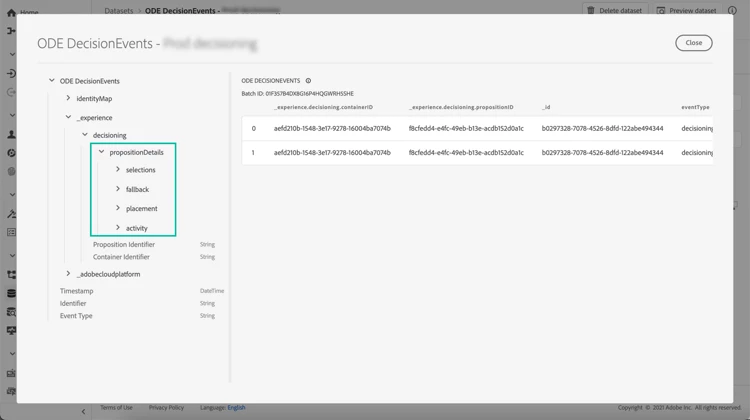 I will use the ODE Decision Events dataset, a system-generated dataset from Adobe Offer Decisioning. While this blog follows the system-generated dataset, you can perform the same analysis on any datasets you bring to the Adobe Experience platform or from a derived dataset from the system-generated dataset. You can also bring in the post-offer delivery feedback dataset and perform the analysis on the combination of both the system datasets and the feedback dataset.