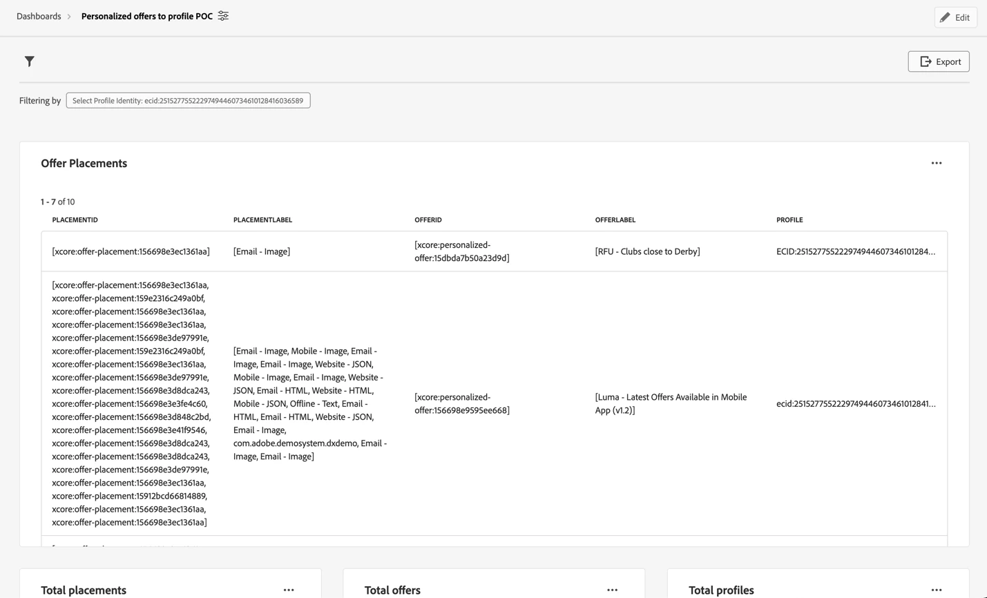 At Offer Level: Select one or more offer IDs and see the profile identities