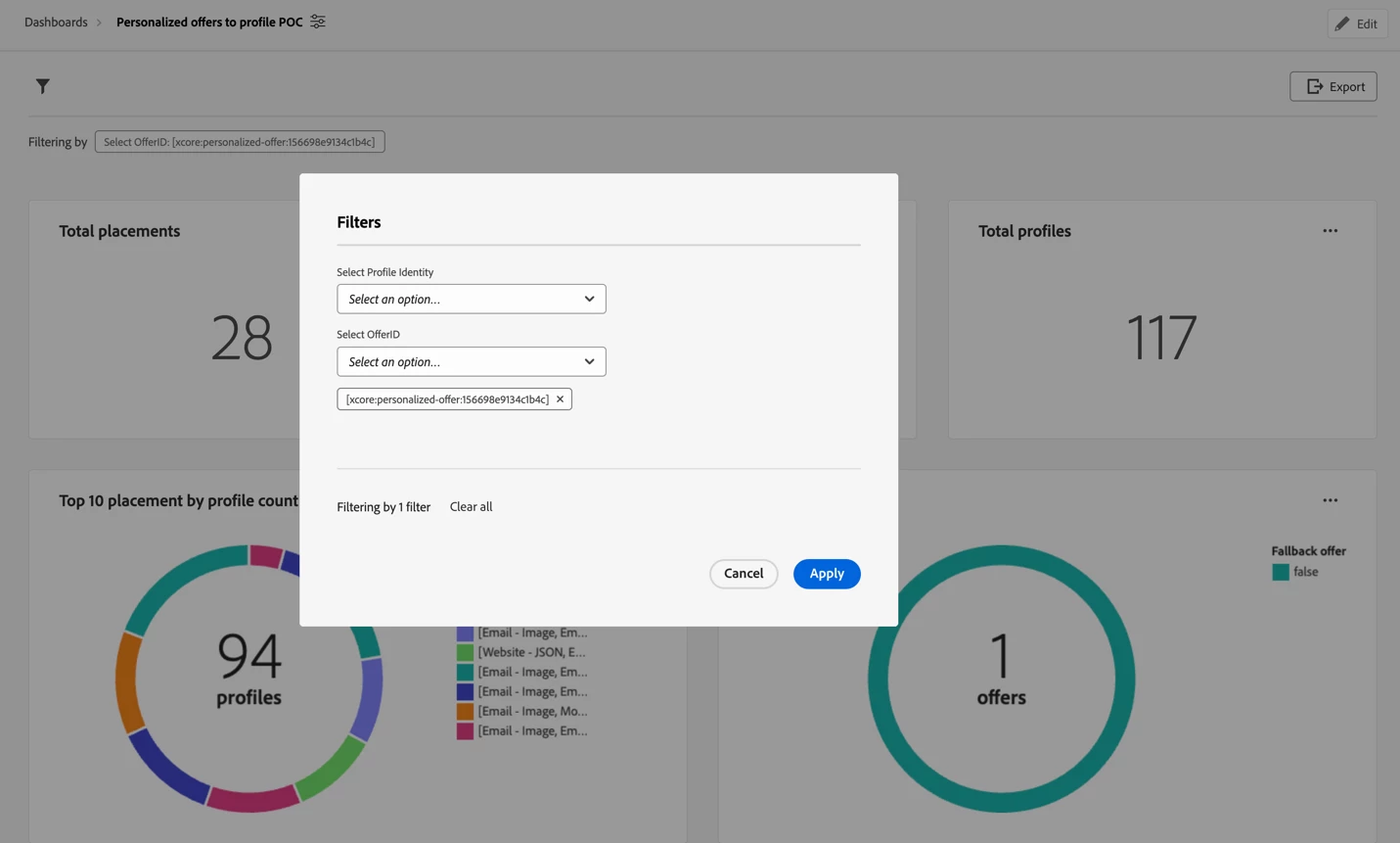 Below are the filters I have created one for Offer ID and one for Profile Identity