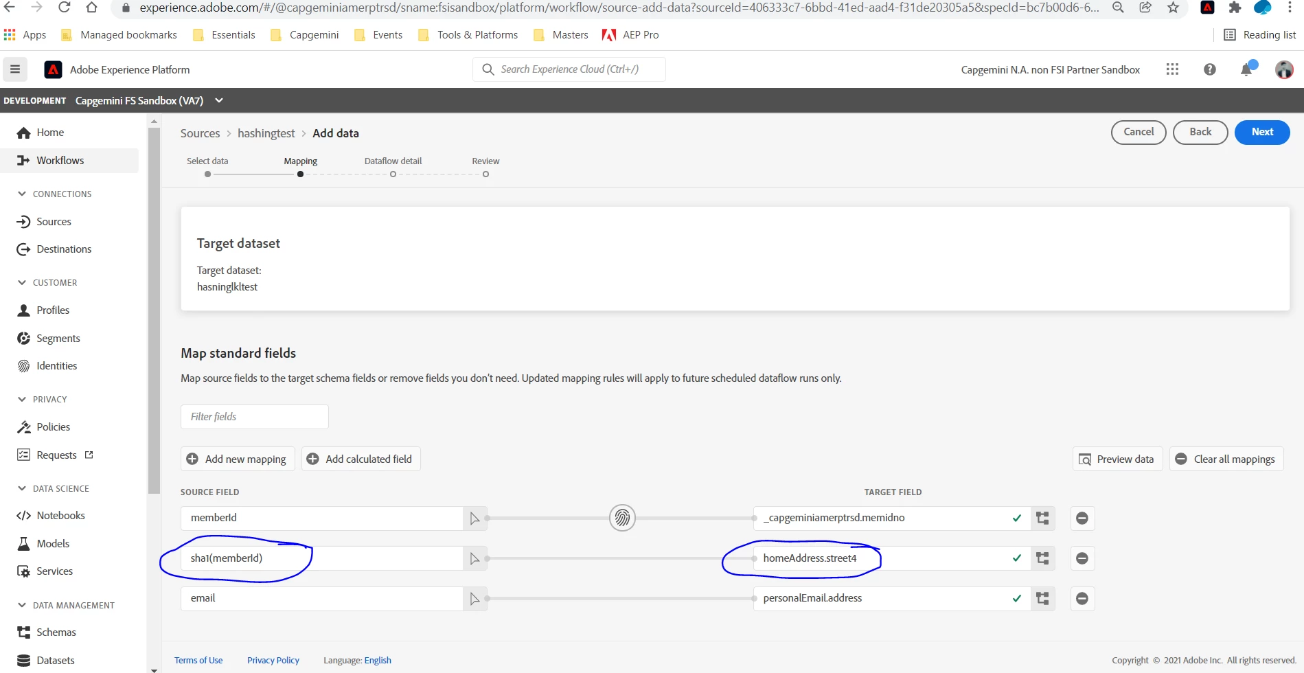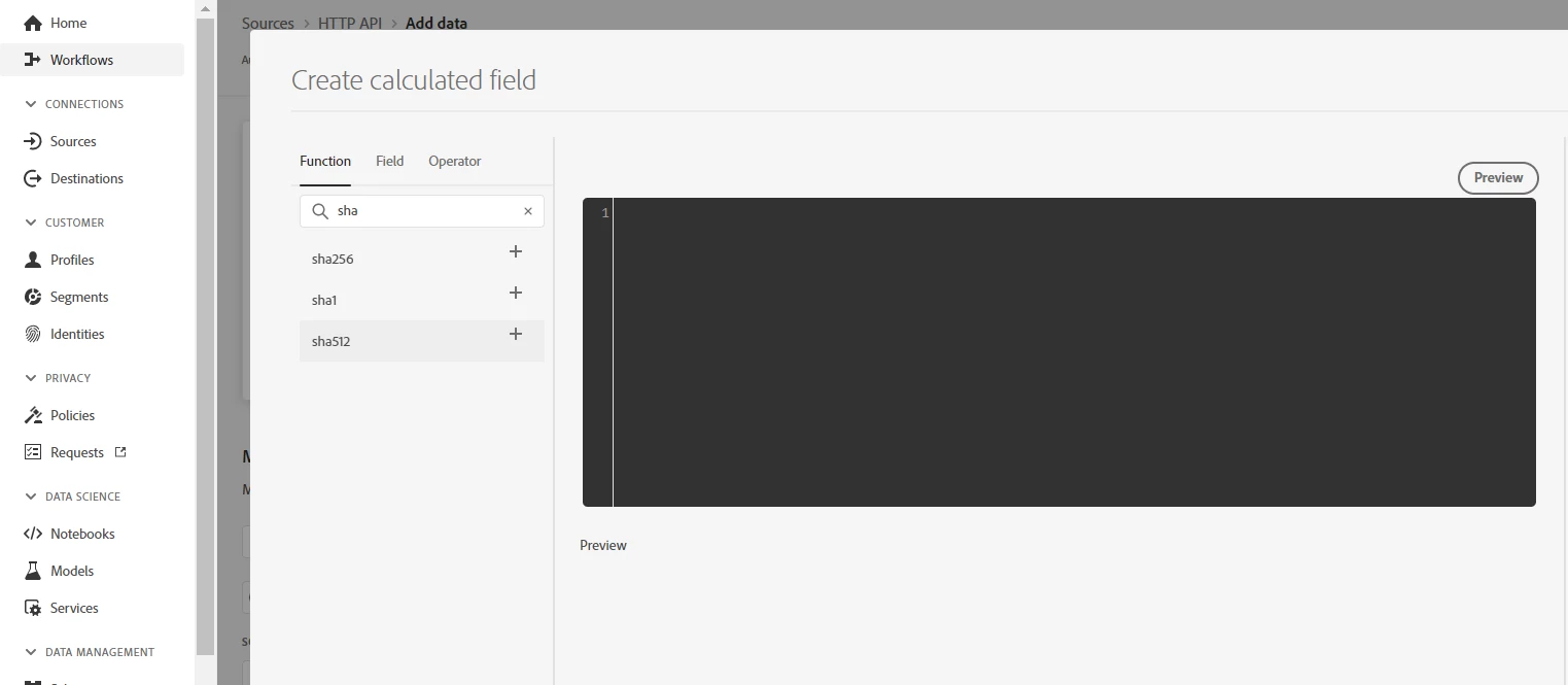 @sandip_surse - You can do it if you ingesting/streaming non-xdm data and using a mapper (when you are setting up the source connection). Even if you are using XDM, make sure you select "non-xdm" in the first step, which will bring you the mapper. While in the mapper, you can add a calculated field and hash it. Below is a screenshot of the same.
