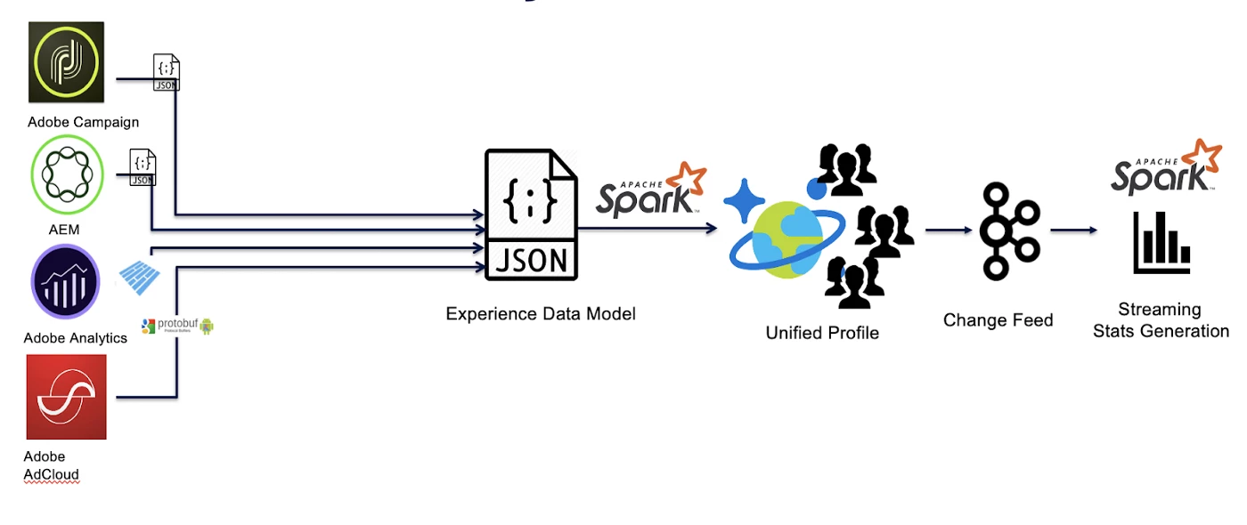 When data is ingested into Profile from various sources, each mutation to the profile store generates a change feed message sent on a Kafka Topic. This firehose is consumed by a Spark Streaming Application to generate various statistics on top of the data in real-time. We have a need to generate streaming statistics such as data-source based metrics and real-time aggregates on top of the Adobe Experience Platform Real-time Customer Profile. These computations are used by various internal services for operations like segmentation and data export.