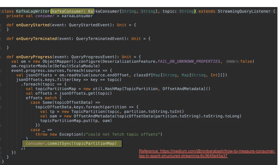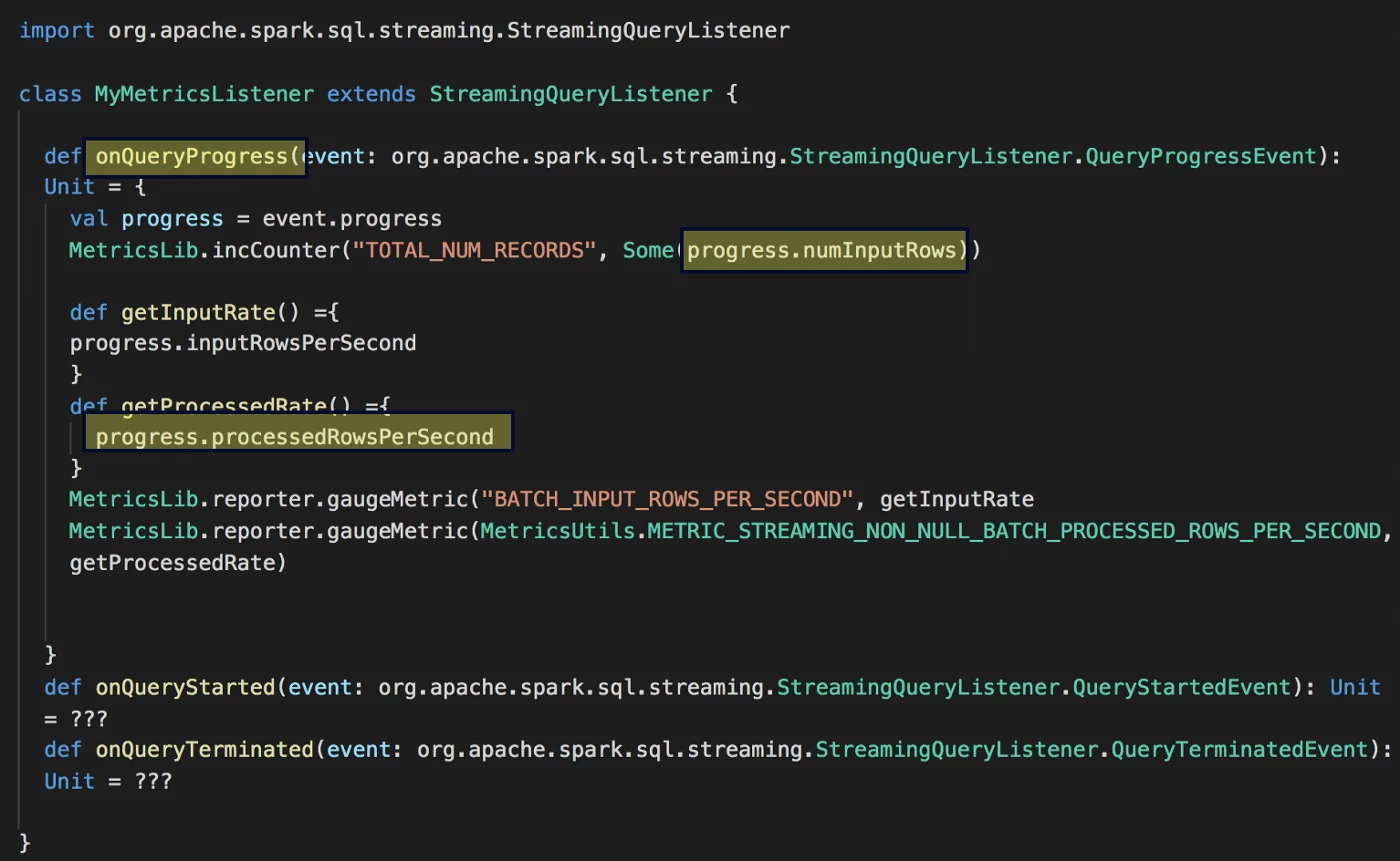 Having a streaming-based ingestion mechanism makes it that much harder to track. We will specifically use the StreamingQueryListener to keep track of the progress as we consume from Kafka