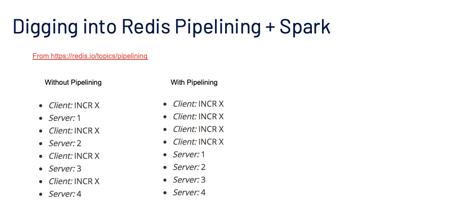 Let’s look at pipelining here in the figure below. To quote the Redis documentation: