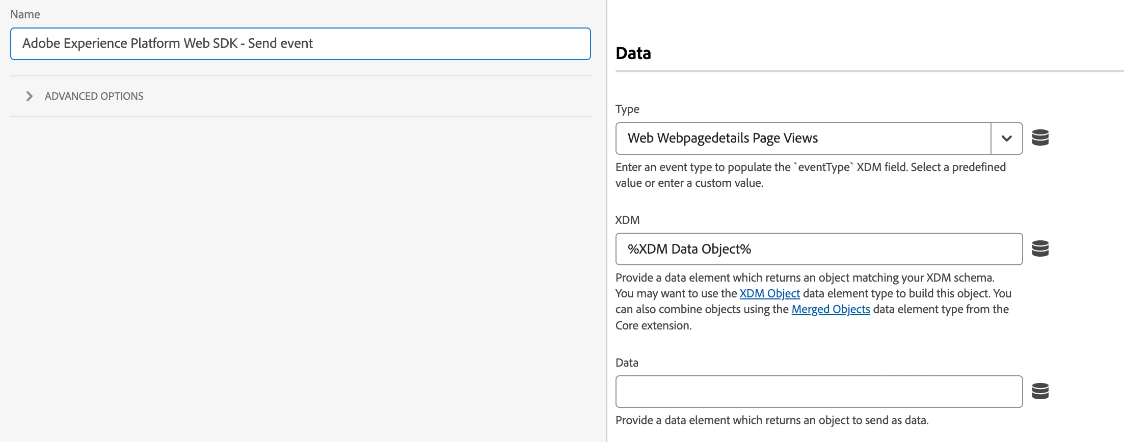 Second step I then loaded the xdm object data element into the rule action by selecting Adobe Experience Platform Web SDK - Send event. I have specific conditions for listvar tracking and I would need to insert a custom javascript code that finalizes the tracking.