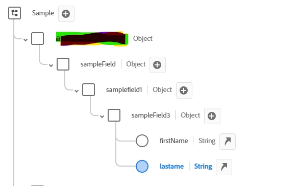 You need to decide on the hierarchy first as per the screenshot samplefield 1 and samplefield 3 are not at same level now, what i mean by this is samplefield 1 is nested in samplefield and samplefield 3 is nested in samplefield 1.