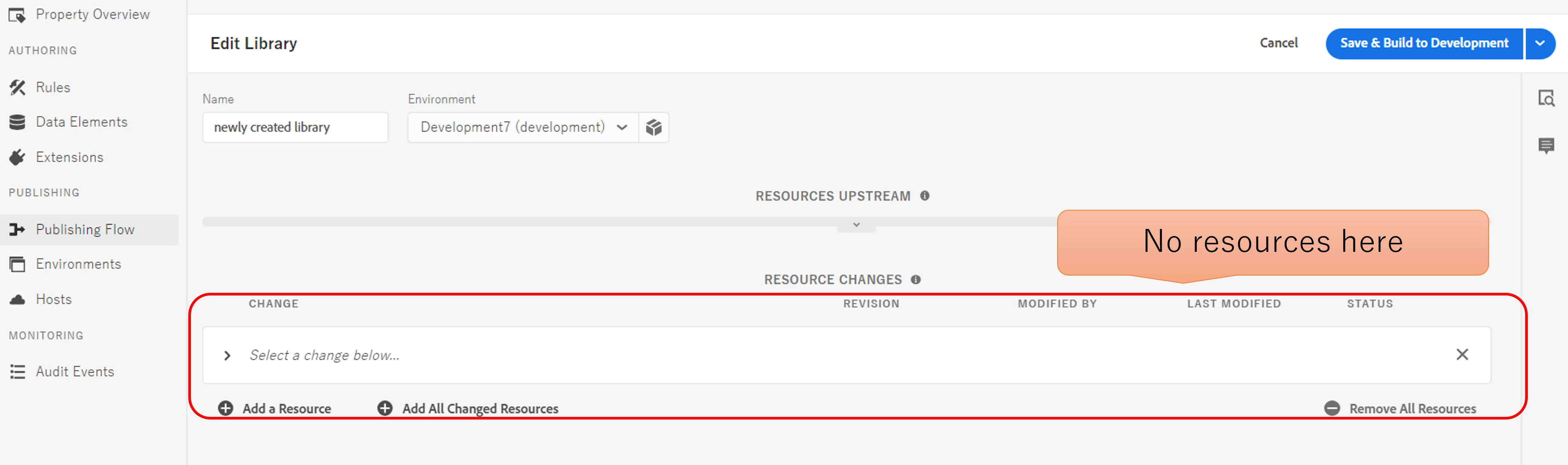 1st we created new library and clicked "add all chenged resources" button.