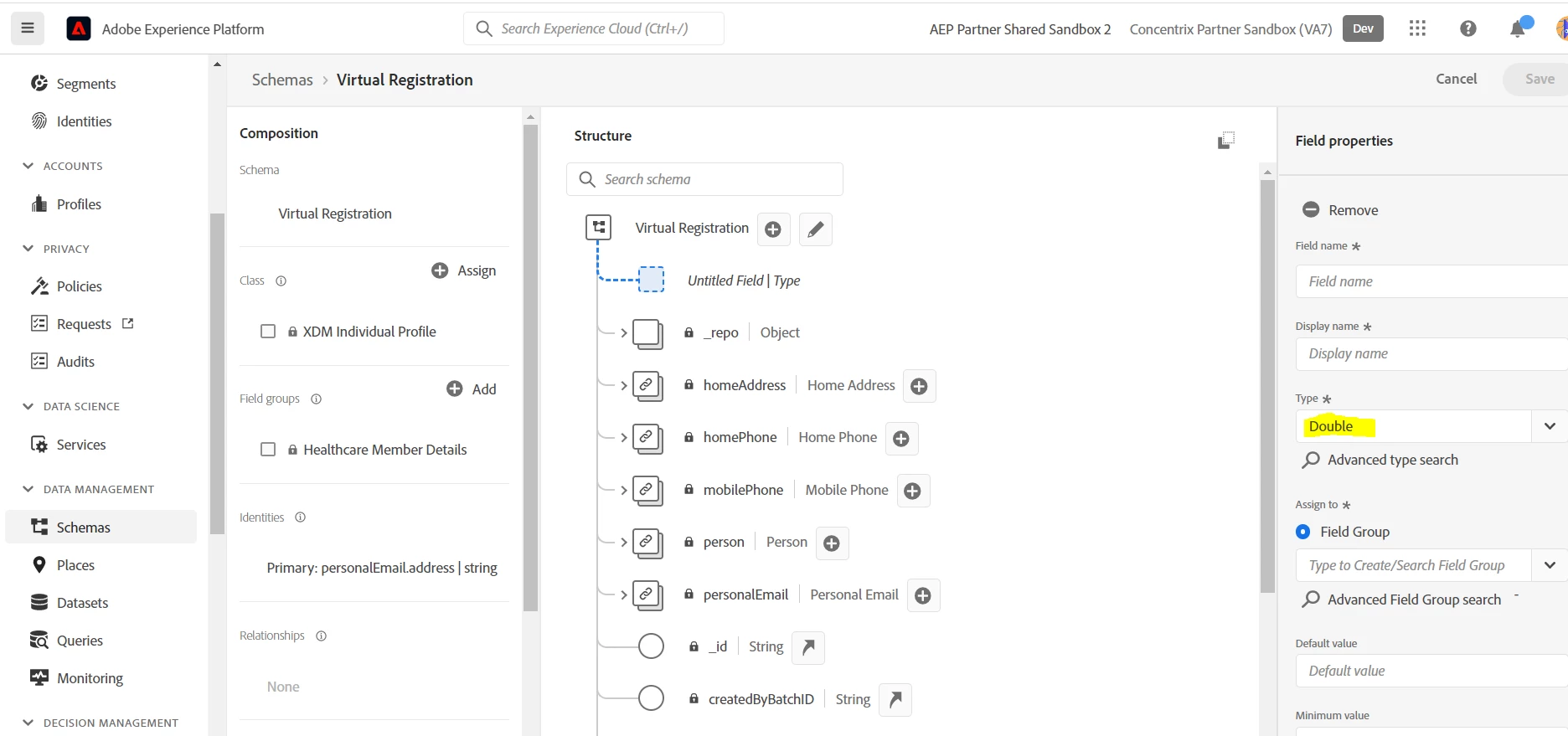 How to define Decimal datatype in AEP ??