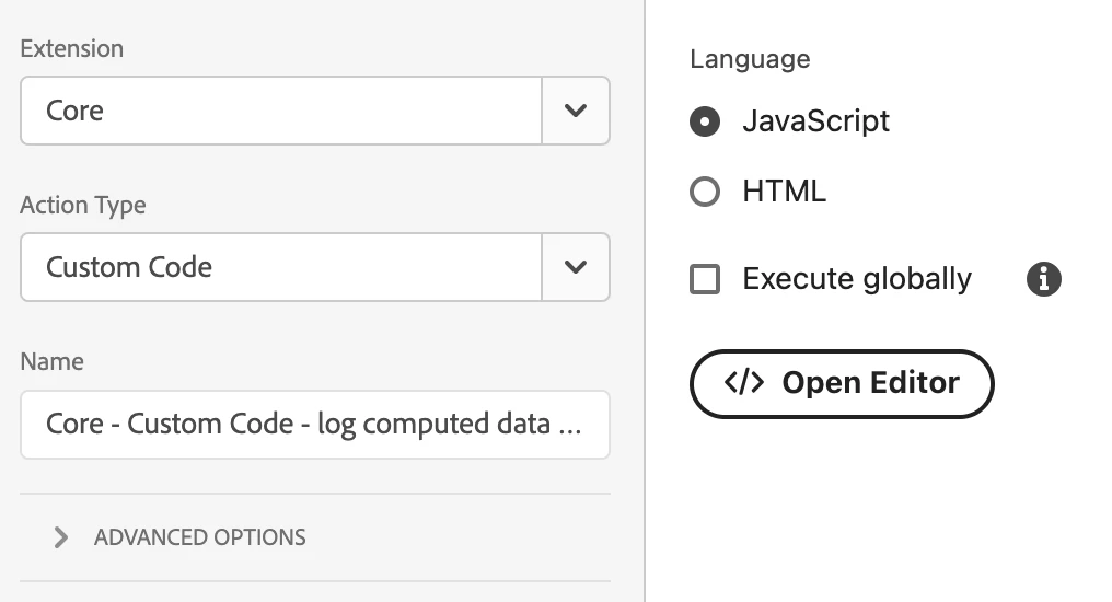 - Action Type: Custom Code