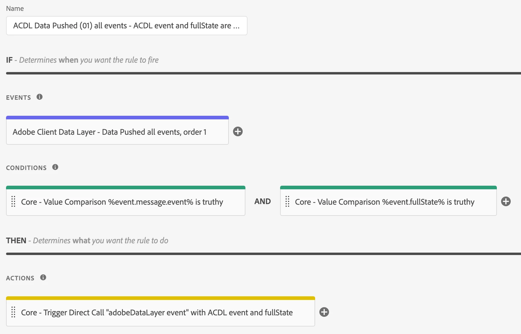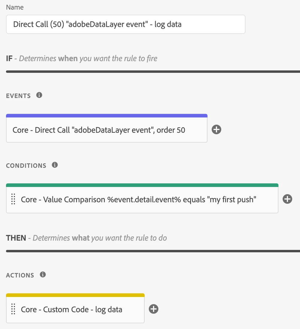 - Name: Core - Direct Call "adobeDataLayer event", order 50