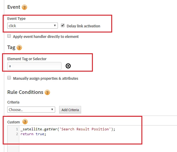 I am trying to capture the Search Type in following script code and this code has been written in Data Element in DTM. I am facing issue with that how to set condition in Rule so that i can send this data element result to the prop17.