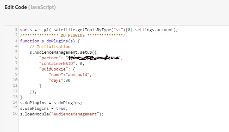 2. In configuring the tracker using custom code, I added the following code indicated by the documentation (documentation link: Analytics to Audience Manager Implementation Guide . I am using the server-side integration).