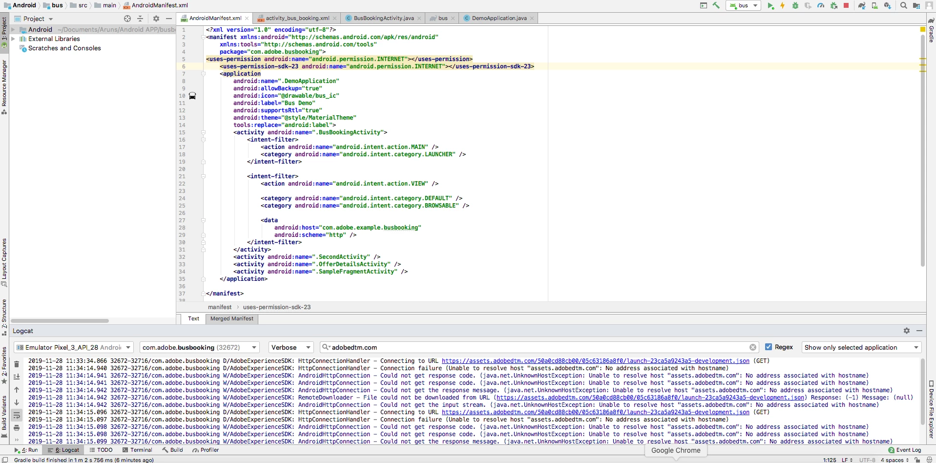 Unfortunately we're getting some errors while Confirming that calls are being made to the Adobe servers in the Android Studio Logcat.