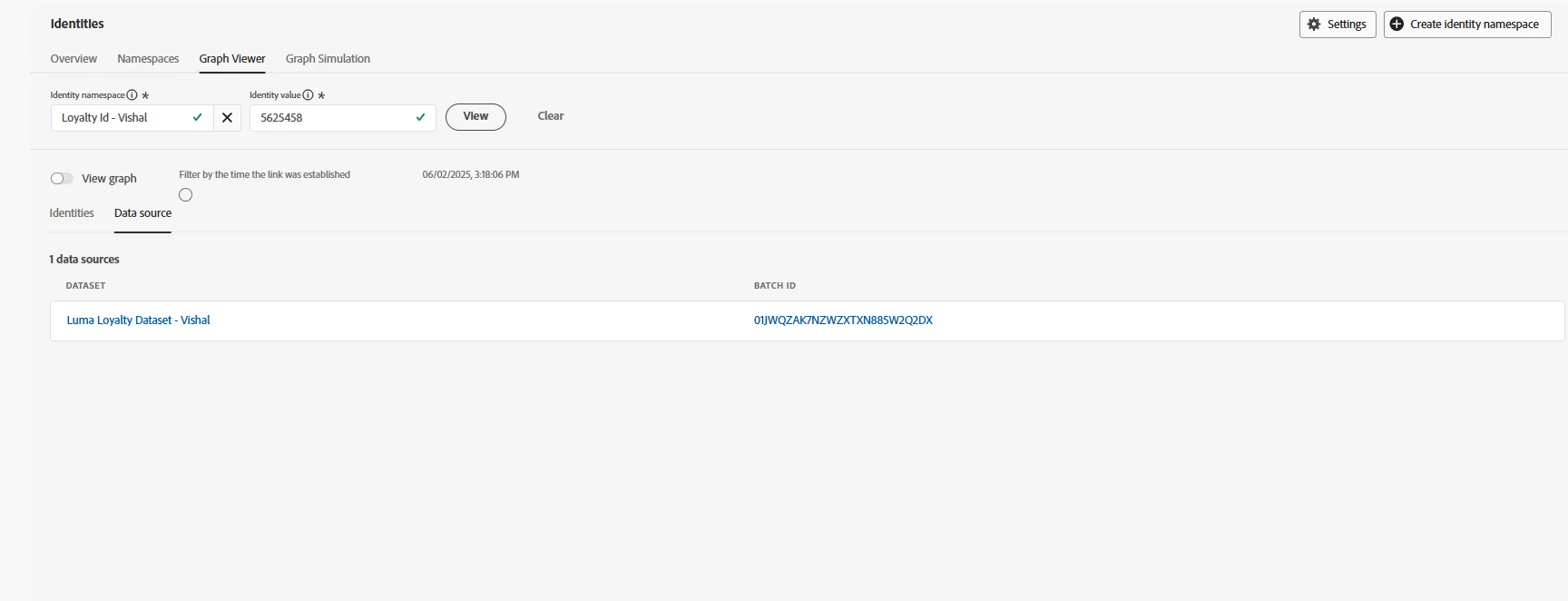 Hi, I am creating two schemas individual profile and experience event schema and using loyalty_Id as identity in the both schema. Whether should I create single namespace for both the Ids or create two namespace to assign them separately?