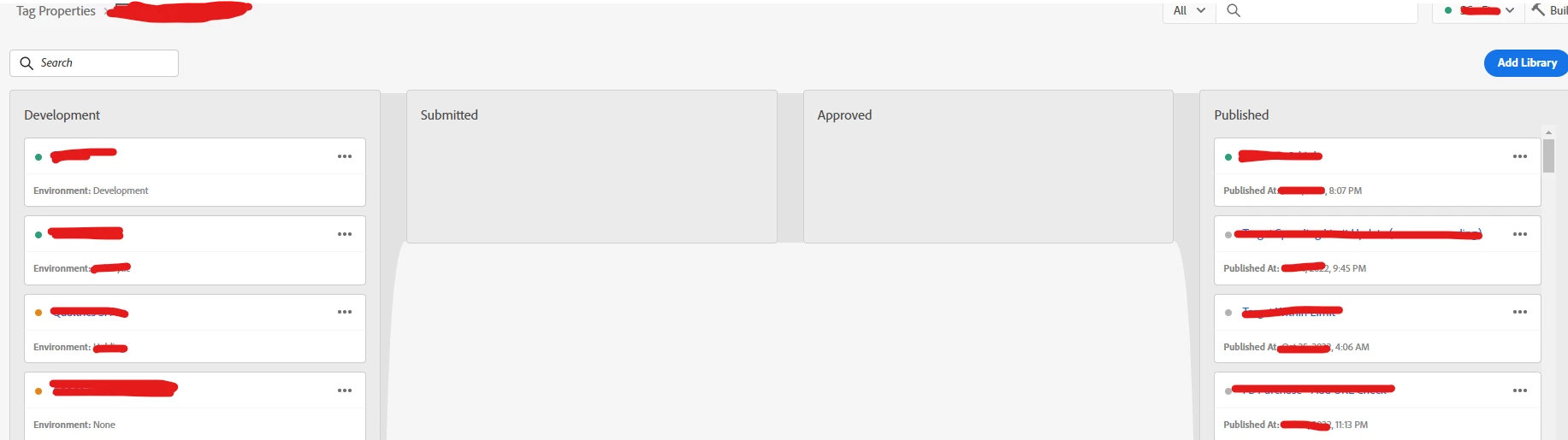 If I create a new library will it have production tags and other development library tags ?