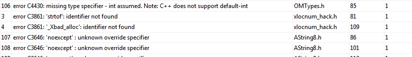 Worked with Visual Studio 2010 and Visual Studio 2015 and getting the same errors