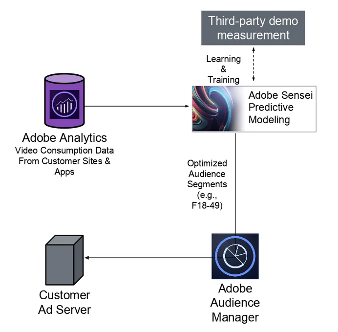 - Adobe Sensei, our artificial intelligence and machine learning technology, analyzes the data against a third-party measurement provider to learn which behaviors predict viewers’ demographic characteristics.