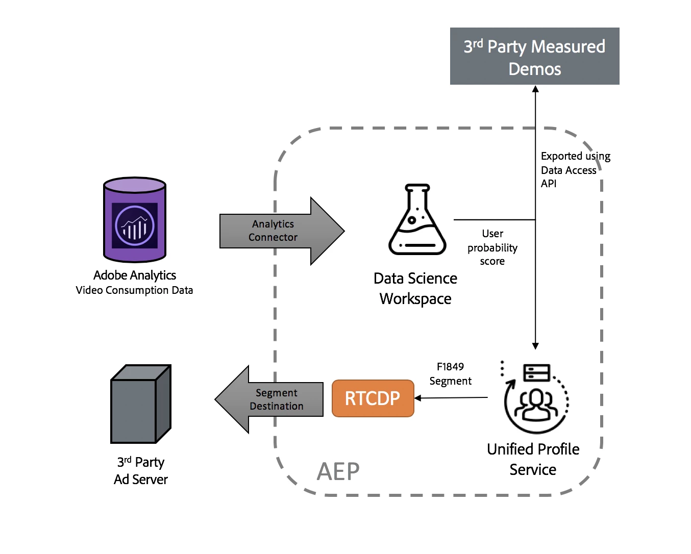 - The audience segments are placed in the customer’s Adobe Audience Manager account, where they can export the segment into their ad server for effective audience targeting.