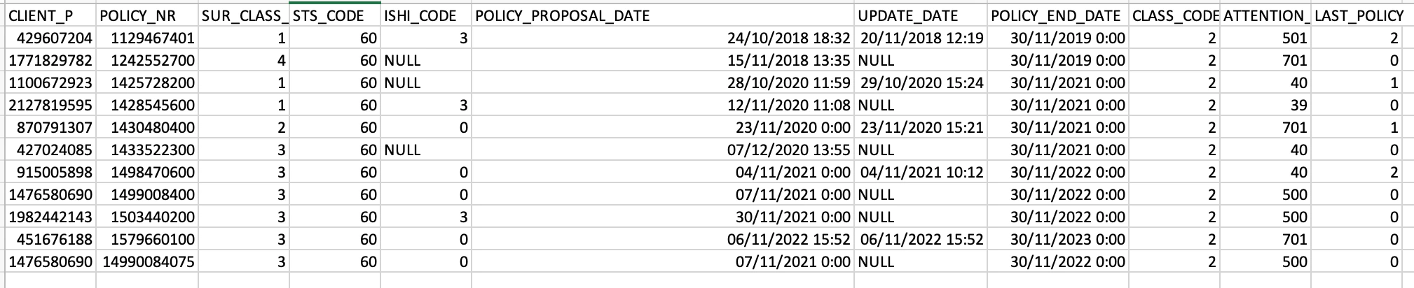 attached is the target schema and the row data