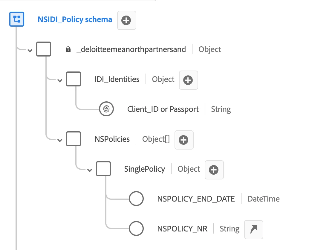on the the target schema i have array of objects which i need to ingest data from table (for now it is csv )