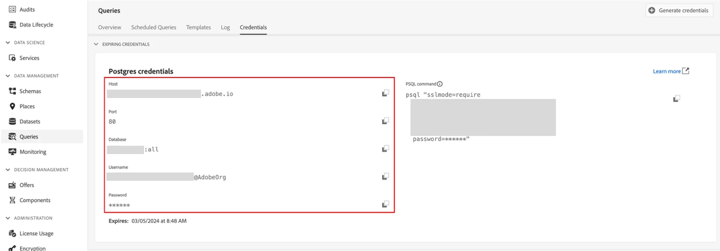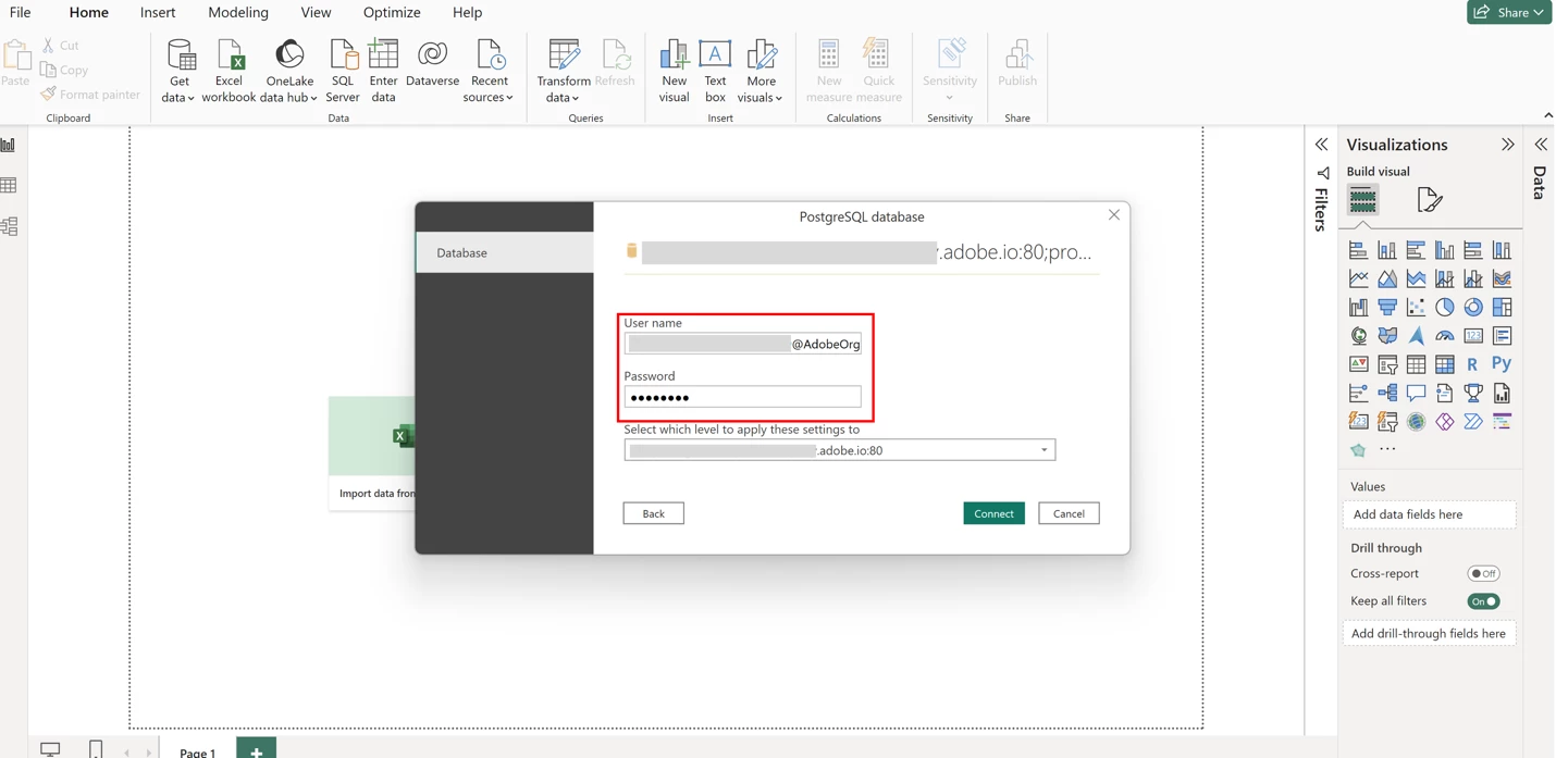 Password option 1: Expiring credentials are a quick way to test these steps to integrate Power BI with Adobe Real-Time CDP but note that you will have to refresh the credentials every day.
