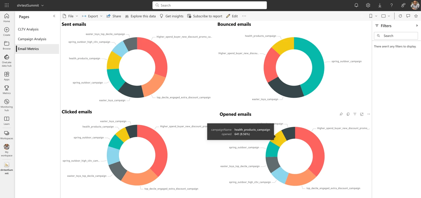 Once the data is loaded you can build dashboards and report as you would in Power BI. Refer to Power BI documentation on guidance for how to author charts.