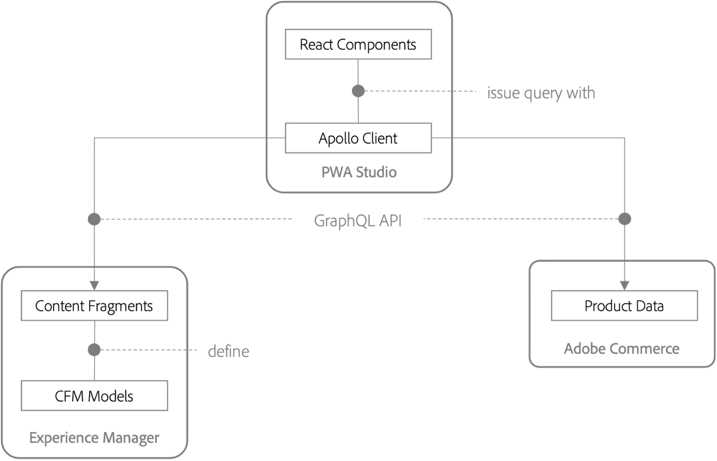 Designing the structure you need is easy with the Content Fragment Model Editor within Adobe Experience Manager. The main challenge to integrating Adobe Experience Manager Content Fragments (or any other data) with your PWA Studio application is fetching data from multiple GraphQL endpoints. This is because out of the box, PWA Studio works with a single Adobe Commerce GraphQL endpoint.
