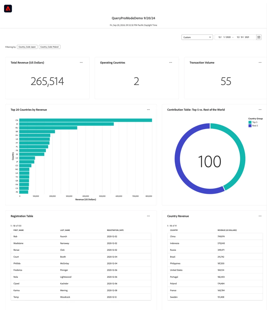 In a Data Distiller Dashboard, each chart can be expanded to view the underlying data, displayed in a table format with pagination, making it easy to explore like an Excel file. You can also download the data as a CSV for further analysis. The ViewSQL feature reveals the SQL query used to generate the chart, allowing users to reuse the query in other charts or add it to their private LLM for advanced personalization and modeling. This flexibility enhances both data exploration and customization.