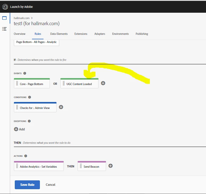 4) in the "Events" section of the Rule, click on the "UGC Content Loaded" portion (see screen shot below)