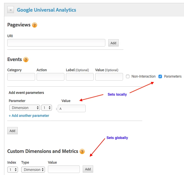 we have GA (UA) tool setup in DTM. We set some custom dimensions and metrics in event rules. It seems that the custom dimensions are not cleared in between successive event calls.