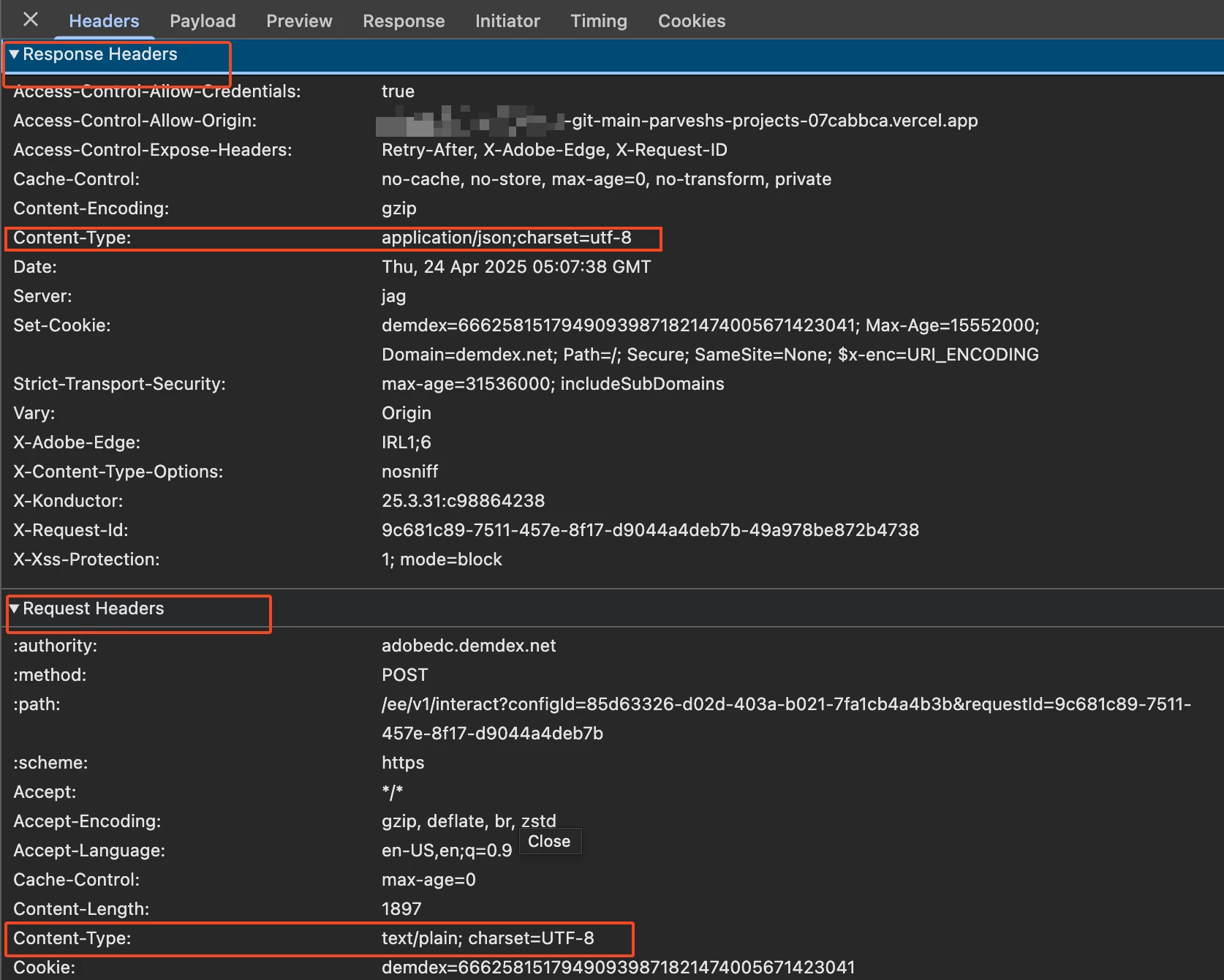 It seems like there may be an issue related to character encoding or payload formatting in the Web SDK.