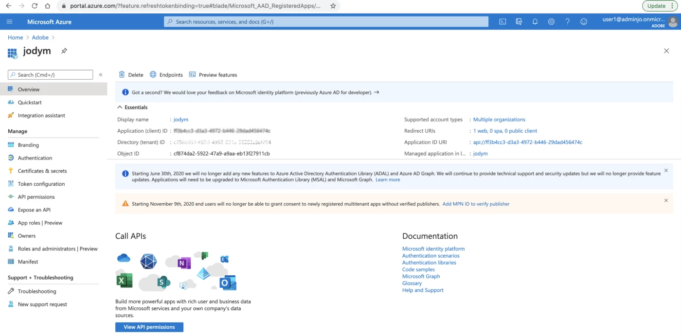 Important Note: Azure Multi-Factor Authentication(MFA) works by requiring multiple forms of verification to prove your identity when signing into an application. You need to disable the same to proceed else you will be thrown errors such as this in Experience Platform and Journey Orchestration applications.