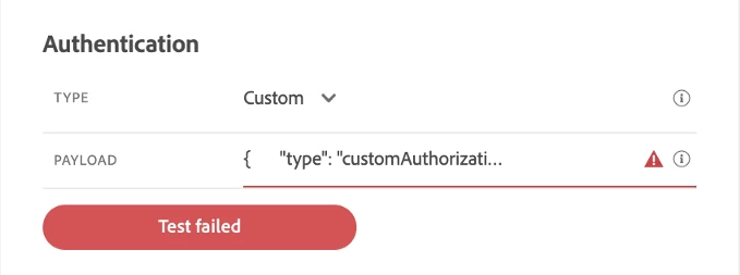 When you configure the custom authentication, you can click on the ‘Click to test the authentication’ button to check if the custom authentication payload is correctly configured, else your journey will fail.