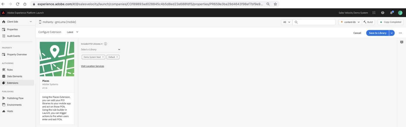 Navigate to Experience Platform Launch > Extensions tab > Catalog > Places extension