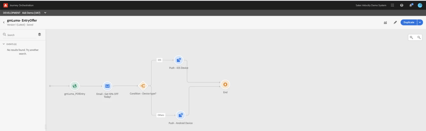 This click action invokes Launch rule ‘POI Entry’ which triggers the customer journey in Journey Orchestration to deliver the Mobile Push offer and an Email offer based on the customer’s buying preferences and behavior.