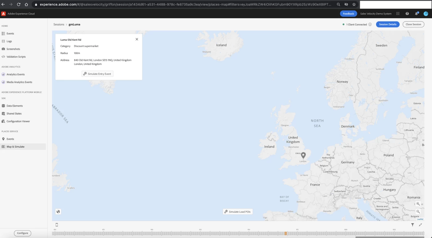 Once you have set up a POI with Adobe Experience Platform Places Service, you can run a real-time simulation to ensure you will deliver the experience for ‘Store Entry’. Here are the steps: