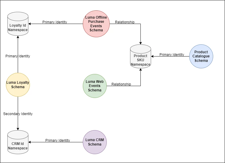I'm exploring AEP space and going through the LUMA Store tutorial. During identity mapping phase between the schemas, I'm not able to connect the dots on how Web Events schema use identity namespace to connect with CRM id that is passed from client side along with ECID? I understand the identity mapping between others schema that we define manually on schema level. For clear understanding, I've this diagram... Just wanted to know, what actually happens behind the scene to connect Web Events data with CRM Schema since we are not defining the identity namespace between those?