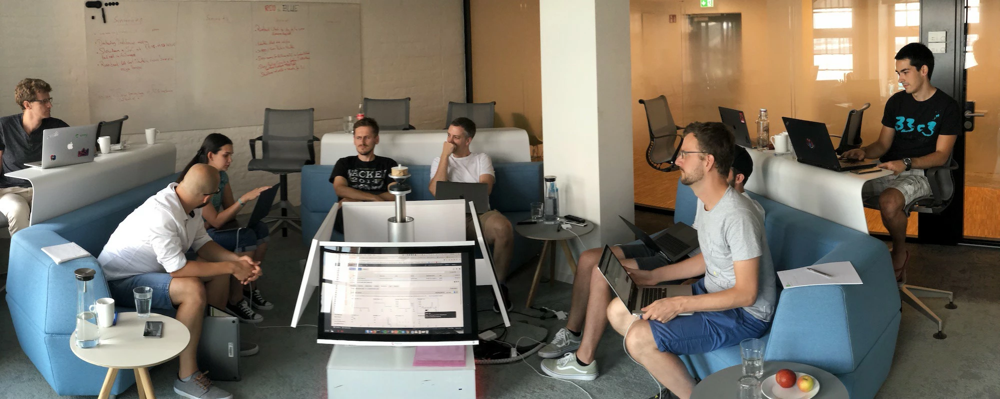 We started the Game Day with an introduction to the target service, its architecture, and the chaos tooling. To quickly note all findings and ideas for improvement during the day, we reserved a collaboration-friendly room in our Hamburg office with lots of whiteboard space.