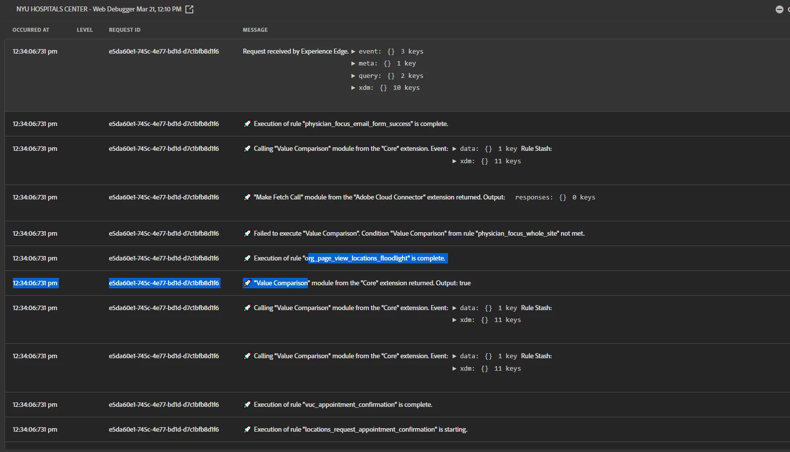 Its very difficult to understand if a rule is succeeding or failing based in Debugger Edge logs. It does not seem to chronologically display or display in association with starting, confirmation or return values.