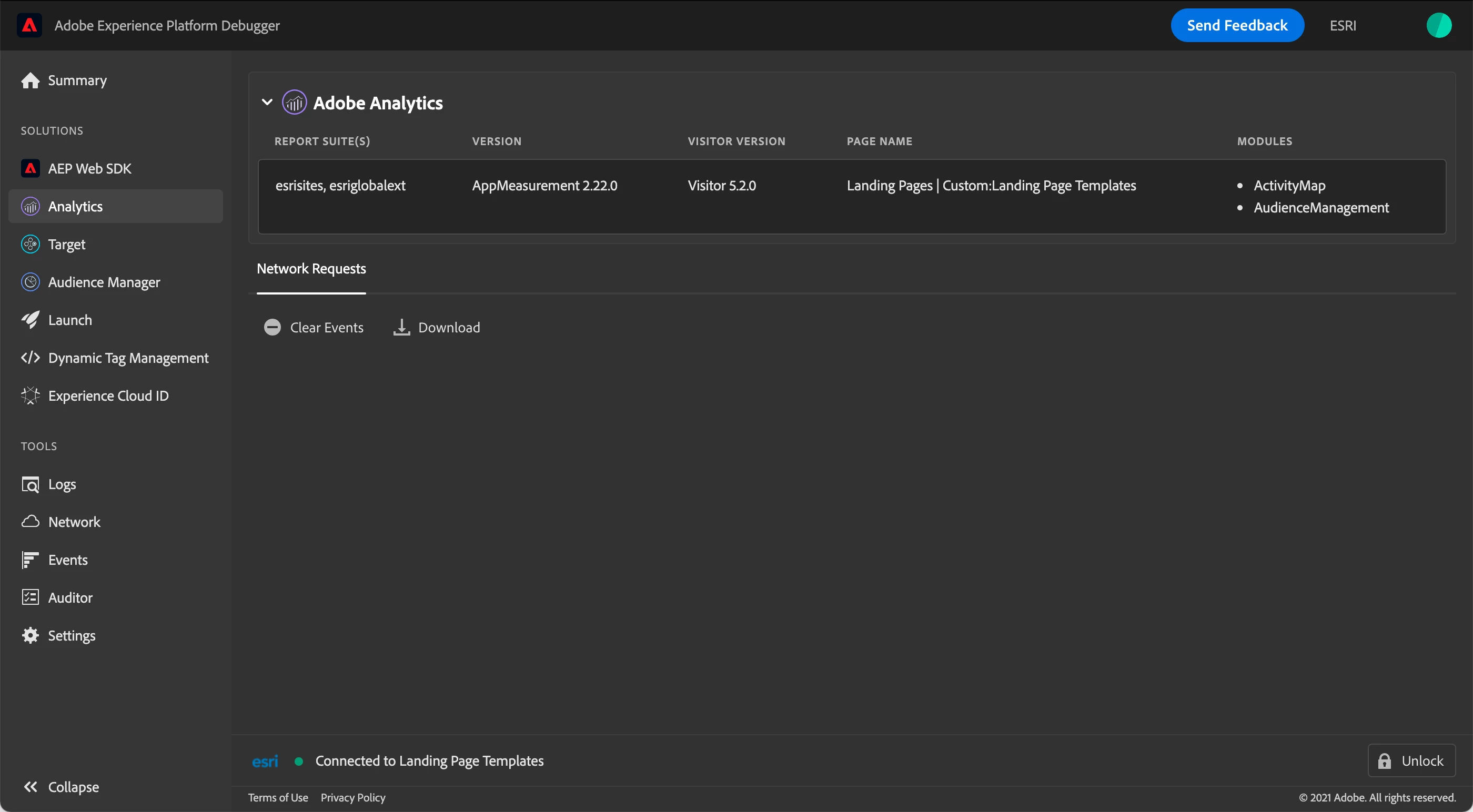 Description - I'm unable to see the network requests under Adobe Analytics for the different report suites. It worked on 6/1, but today on 6/3 it's not working.
