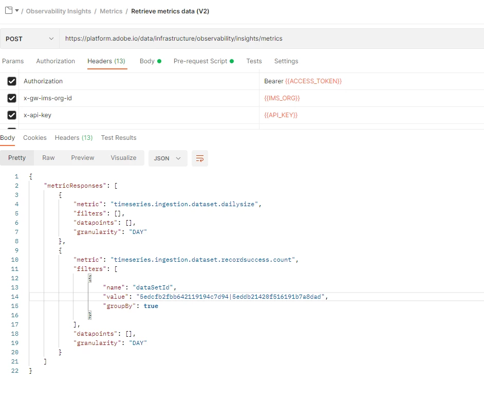 Problem 1: have been trying to access https://platform.adobe.io/data/infrastructure/observability/insights/metrics, however been getting following error
