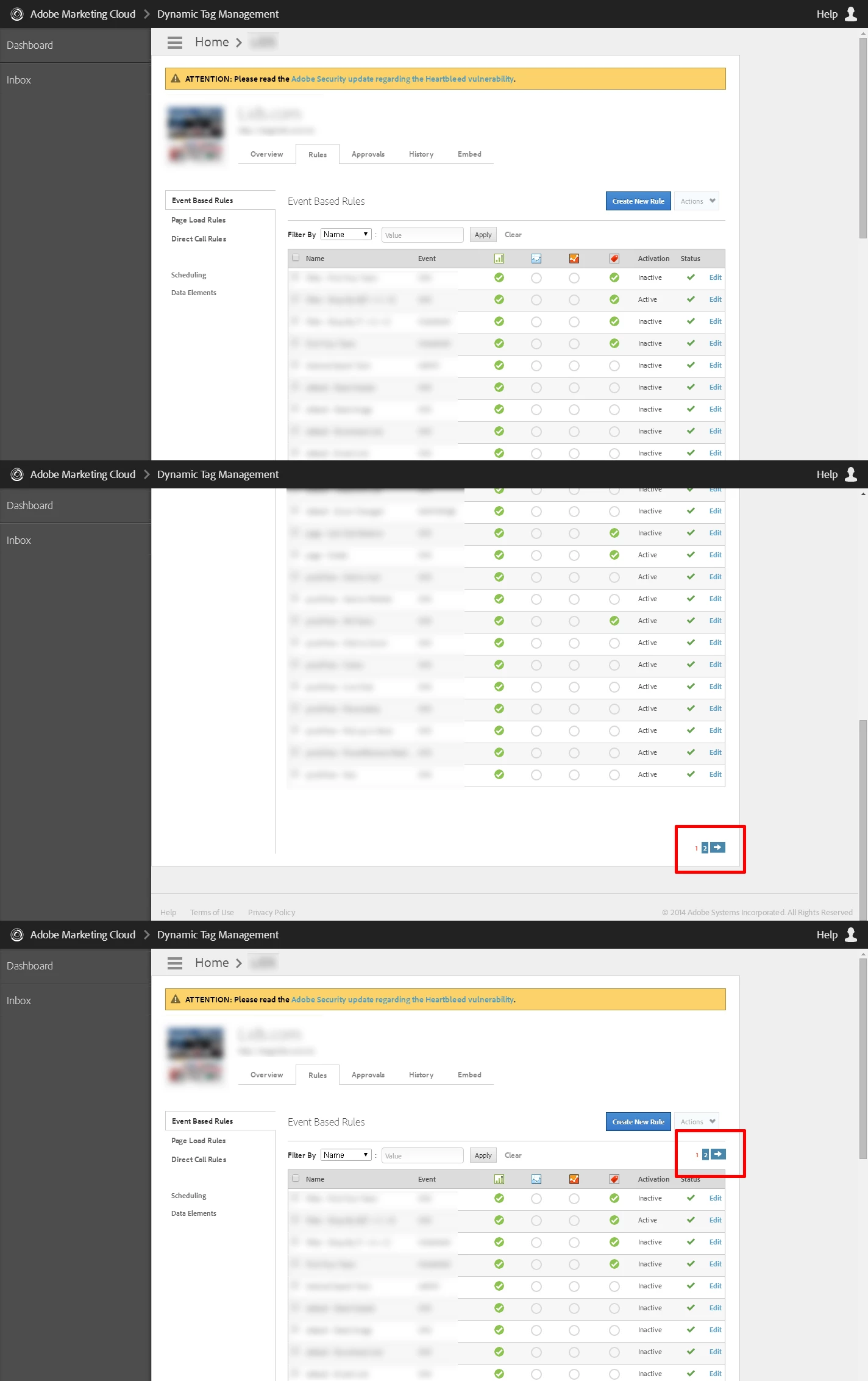 This is just a simple aesthetics request. I think the Pagination controls should be at the top and bottom of each rules sections. IMG-section-1 shows my event based rules page, IMG-section-2 shows the bottom of that page with the Pagination controls, IMG-section-3 is showing where it would be nice to have Pagination controls in the top of the page.