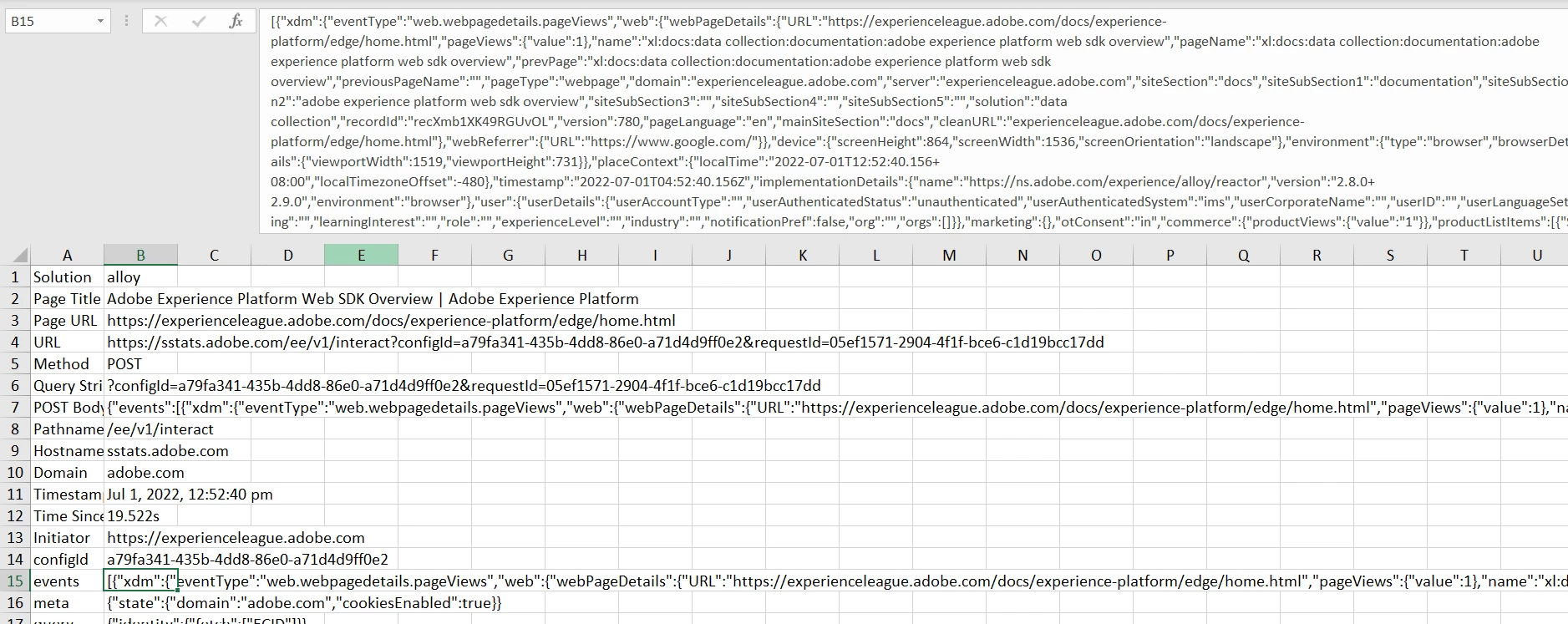 Current Behaviour - JSON values are one long string value, so in the downloaded Excel file, it is difficult to read the individual values properly without additional manual parsing.